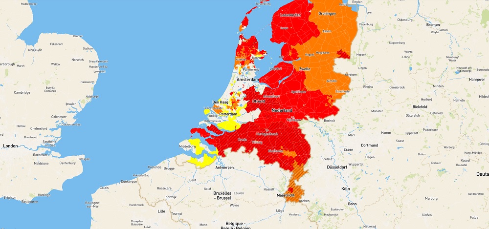 De capaciteitskaart van het elektriciteitsnet in Nederland (Bron: Netbeheer Nederland)