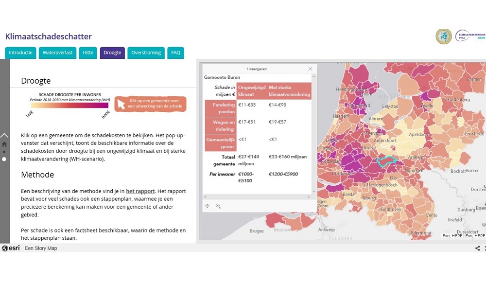 Deze tool bundelt de kennis over schadekosten door klimaatverandering en geeft per gemeente een schatting van de schade.