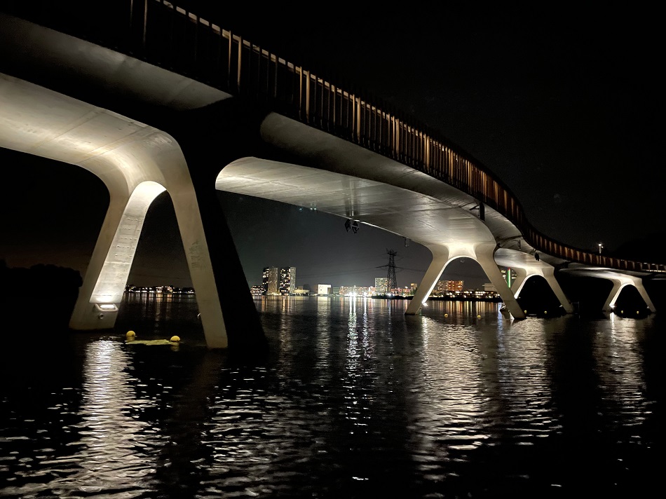 Tussen het Lumièrepark en de toekomstige Floriadewijk in Almere is afgelopen maand een 430 meter langer brug geopend. Een organisch vormgegeven brug die met een lengte van 240 meter overbrugt en over het Weerwater kronkelt. Het lichtplan voor de brug was een van de cruciale onderdelen van het ontwerp.