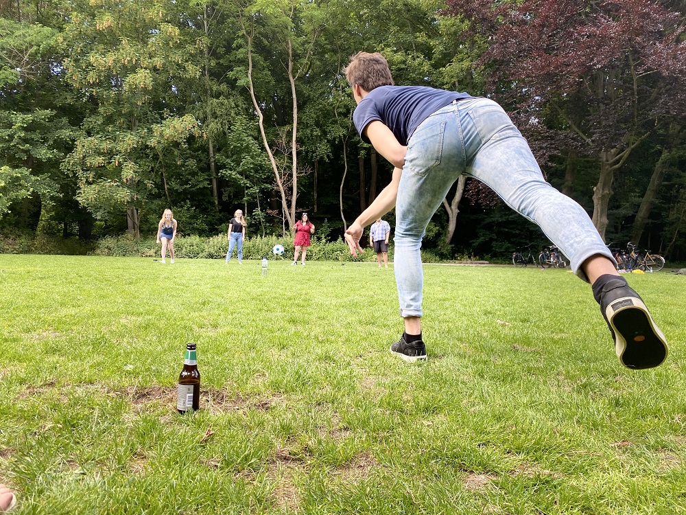Na het sporten kwam als vanzelf het spelen. Door volwassenen dus. Ik zag ze spelen op een slackline, dat was al een tijdje hip, maar nu zag ik ook mensen zonder hipsterbaard balanceren. En het Kubb spel waarbij je werpt met houten blokjes is ook enorm populair. Acrobatiek, jongleurs, skaten, steppen, bommetjes maken in de grachten ook al mag dat niet, van alles gebeurt er tussen de vele picknickende mensen.
