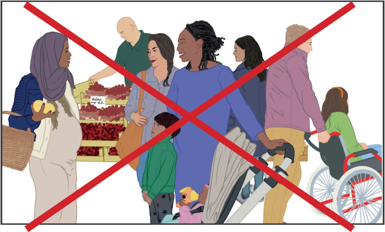Nooit gedacht dat ik zó een plaatje zou gebruiken. Van Pharos die in begrijpelijke en beeldende taal uitlegt wat je in deze Corona tijden NIET moet doen. De afbeelding zonder dat onaangename rode kruis, illustreert heel goed wat we in ons werk willen bereiken, samen met de opdrachtgever; fijne leefomgevingen voor alle soorten en maten. Leefomgevingen die uitnodigen om elkaar te ontmoeten. Wat nu dus niet kan.