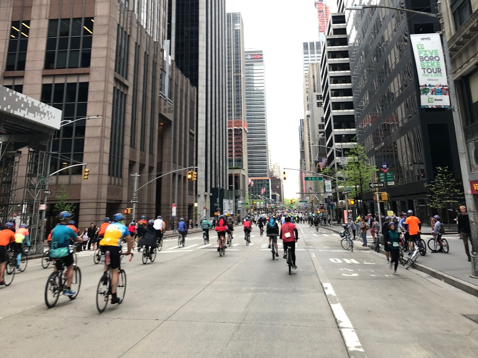 “De week begon goed. Voorafgaand aan het congres, op zondag 6 mei, vond de Five Boro Bike Tour plaats, ’s werelds grootste fietstocht van 64 kilometer met als doel geld in te zamelen voor gratis fietseducatieprogramma’s in de stad. Om met bijna 32.000 andere fietsers dwars door afgezette straten van de Big Apple te mogen fietsen, was een onvergetelijke ervaring.