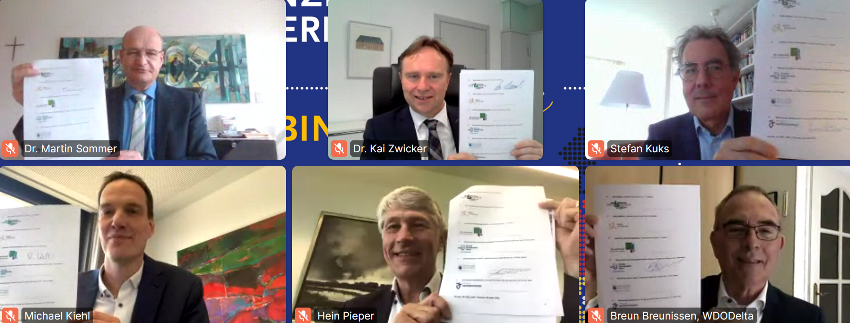 Onder het motto "alleen gaat het sneller, samen komen we verder" hebben de drie Duitse Kreise en de drie Nederlandse waterschappen de handen ineengeslagen om deze historische taak aan te gaan. Het is de uitdrukkelijke bedoeling de daad bij het woord te voegen en de eerste plannen voor concrete uitvoeringsprojecten in de komende jaren zijn reeds gemaakt. De ondertekenende organisaties, met uitzondering van Waterschap Drents Overijsselse Delta, zijn alle partners van het Grensoverschrijdend Platform voor Regionaal Waterbeheer (GPRW) en hebben dus al bijna 10 jaar ervaring met grensoverschrijdende samenwerking op het gebied van waterbeheer. De deelnemers aan de videoconferentie zijn van mening dat het concept van inhoudelijke samenwerking tussen de waterautoriteiten, met deelneming van een Duits-Nederlands coördinatiebureau dat in Gronau is gevestigd, zijn waarde bewijst.